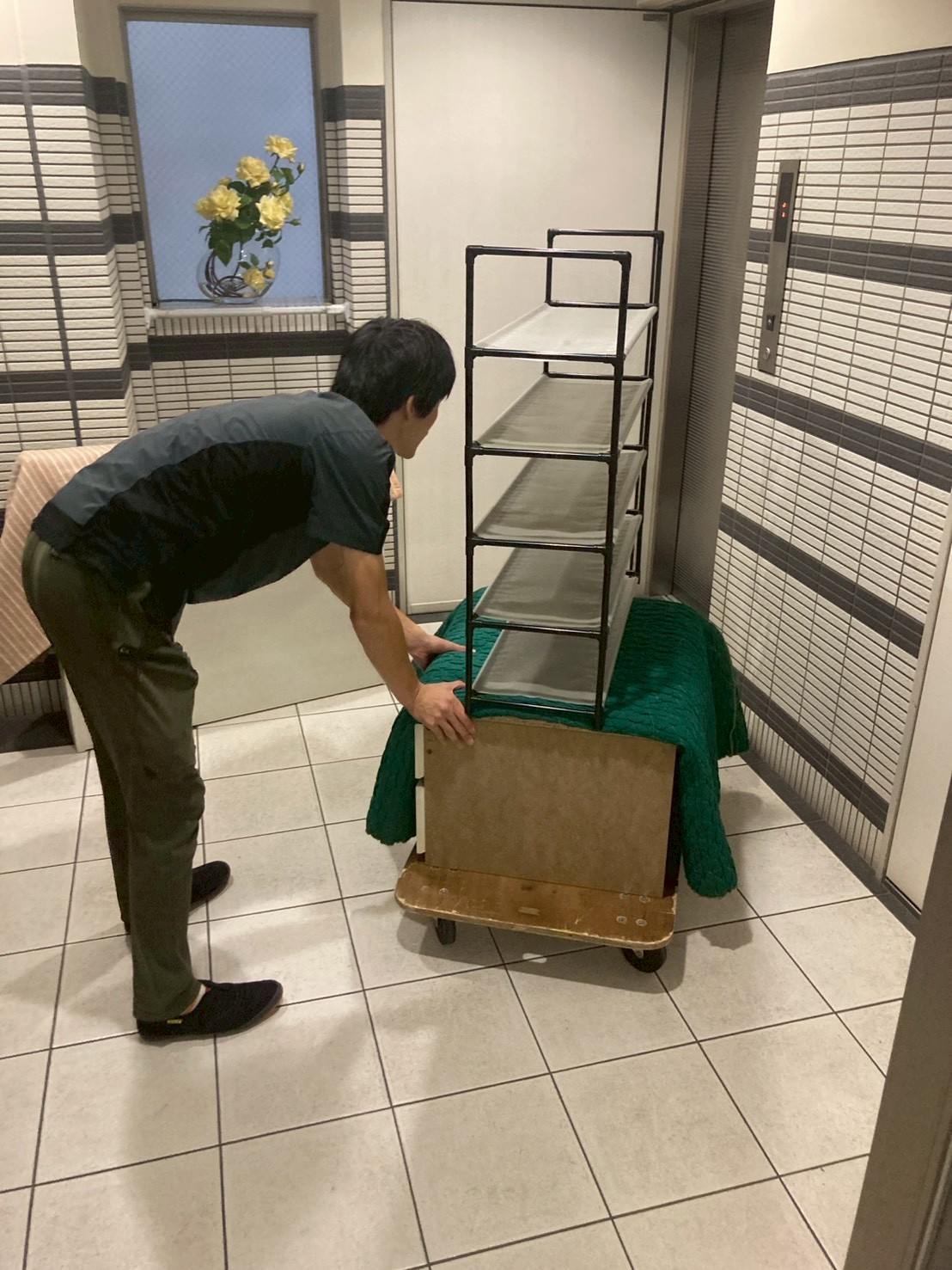 上下階移動はエレベーターを使用しましたが、エレベーター作業では時間をいかに短縮し、他のお客様の迷惑にならないかが重要です。