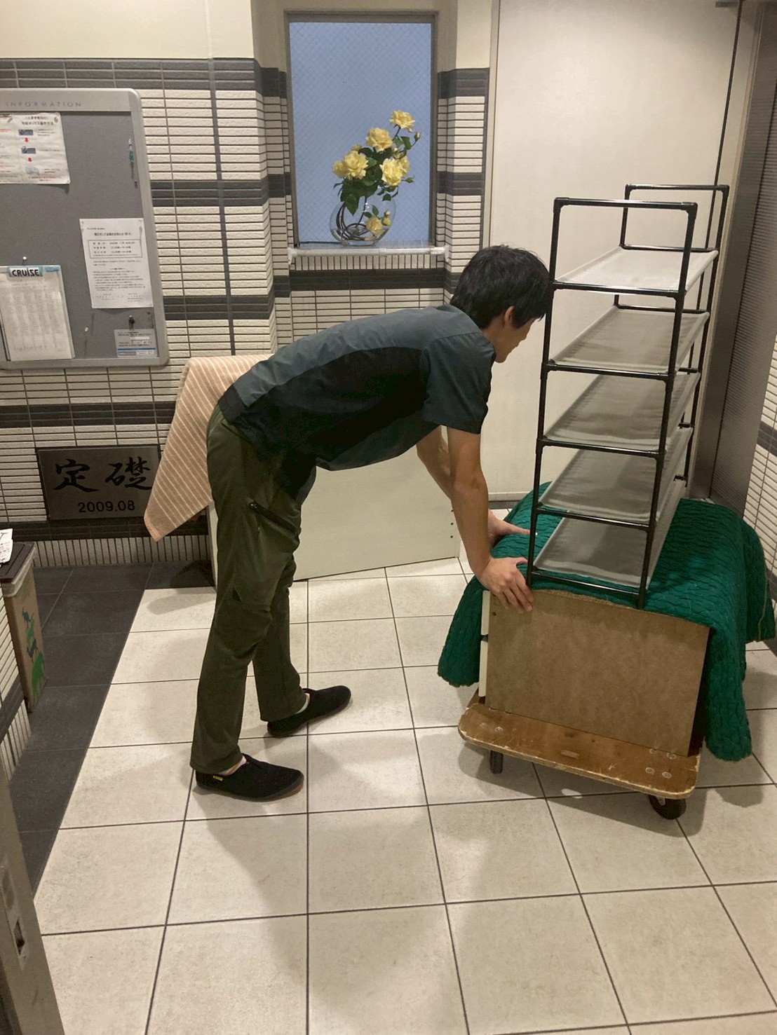 ベット運搬時の難所: 今回のベットは引き出し付きで、サイズが大きく、廊下や扉の開口幅がギリギリでした。壁や床、ベット本体に傷がつかないよう、角度や持ち方を変えながら、極めて慎重に運び出しました。