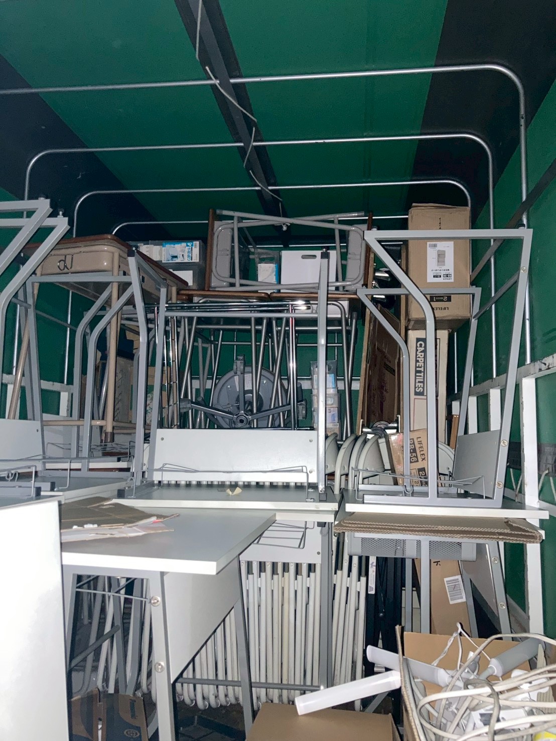 搬出順序の最適化: トラックの荷台に無駄なく積み込めるよう、形の良い物(例:パイプ椅子)から先に搬出し、その後に机やダンボール類を配置することで、積み込みがスムーズになるよう工夫しました。